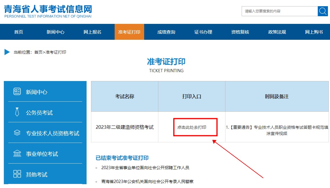 青海2023年二級建造師考試準(zhǔn)考證打印入口:青海人事考試信息網(wǎng)