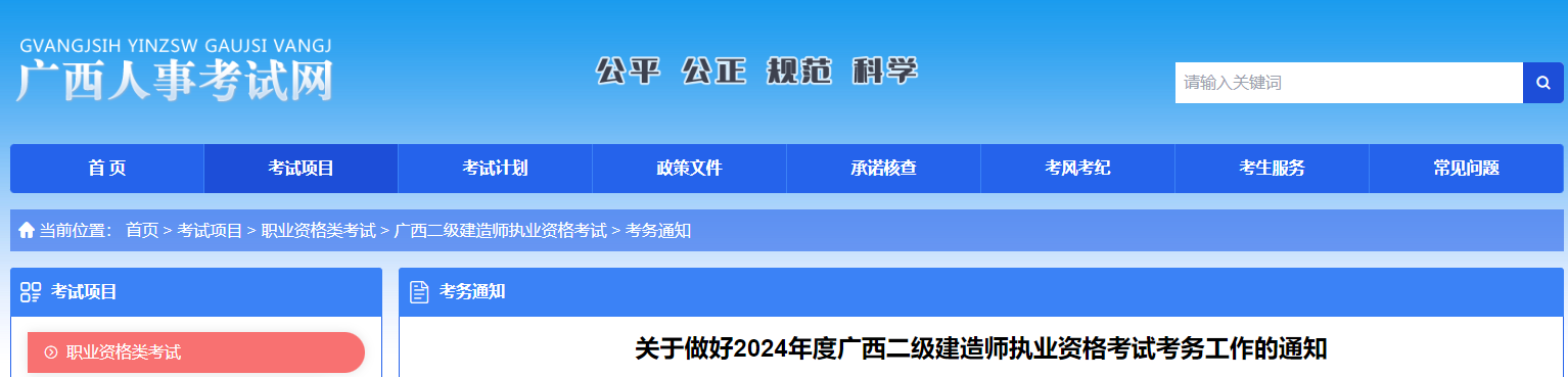 根據(jù)《廣西壯族自治區(qū)人事廳廣西壯族自治區(qū)建設(shè)廳關(guān)于印發(fā)〈二級建造師執(zhí)業(yè)資格制度暫行規(guī)定〉和〈二級建造師執(zhí)業(yè)資格考試實(shí)施辦法〉的通知》(桂人發(fā)〔2005〕68號)精神,為做好2024年度廣西二級建造師執(zhí)業(yè)資格考試考務(wù)工作,現(xiàn)將有關(guān)事項(xiàng)通知如下: