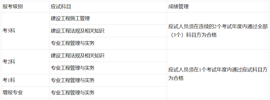 廣西二建考試級別、應(yīng)試科目及成績管理