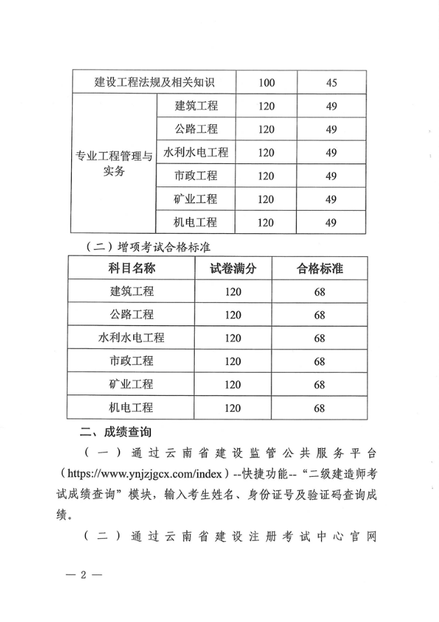 關(guān)于云南省2024年度二級(jí)建造師考試成績(jī)查詢通知及合格標(biāo)準(zhǔn)