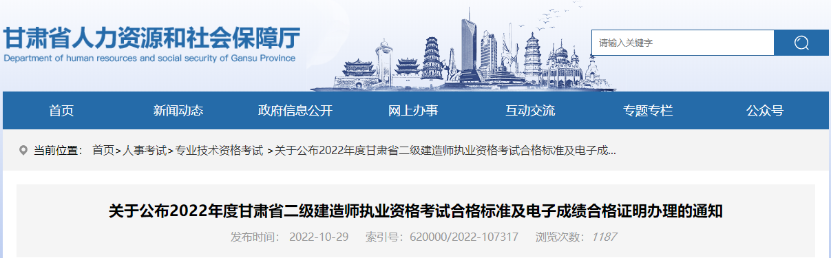 甘肅省二級建造師執(zhí)業(yè)資格考試合格標(biāo)準(zhǔn)及電子成績合格證明辦理的通知