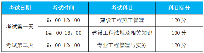 2021年二級(jí)建造師考試時(shí)間、考試科目、各科滿分