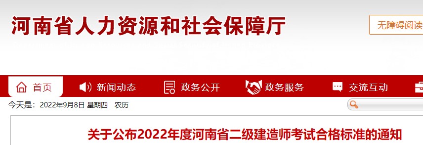 關(guān)于公布2022年度河南省二級(jí)建造師考試合格標(biāo)準(zhǔn)的通知