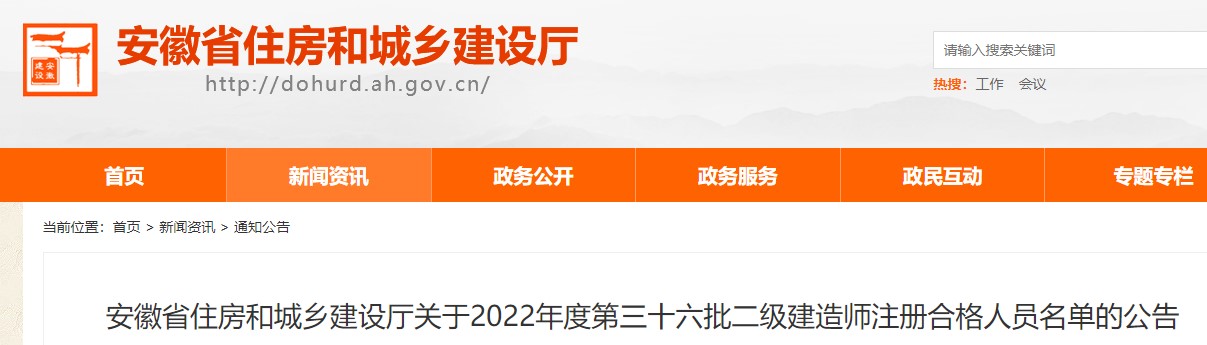 安徽省住房和城鄉(xiāng)建設廳關于2022年度第三十六批二級建造師注冊合格人員名單的公告