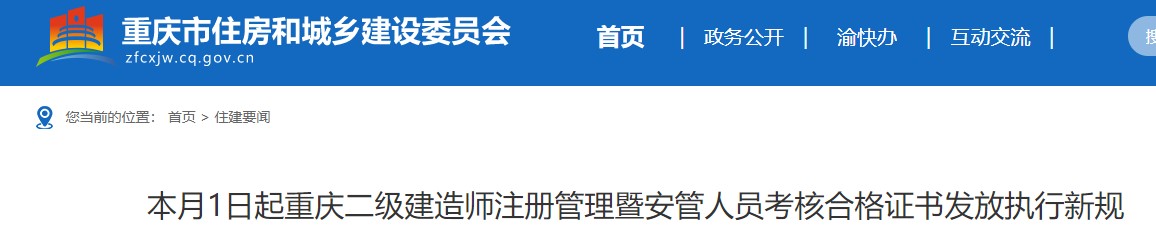 本月1日起重慶二級建造師注冊管理暨安管人員考核合格證書發(fā)放執(zhí)行新規(guī)