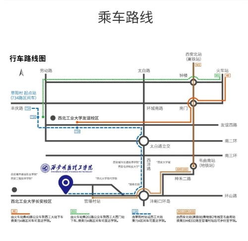 b.從火車站乘40路公交車到“西工大”站換乘734區(qū)間車路可直達(dá)學(xué)院。