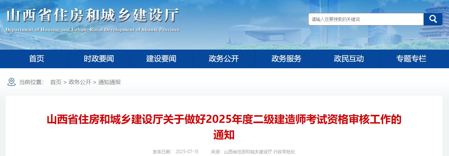 山西省住房和城鄉(xiāng)建設(shè)廳發(fā)布關(guān)于做好2025年度二級建造師考試資格審核工作的通知,具體信息如下: