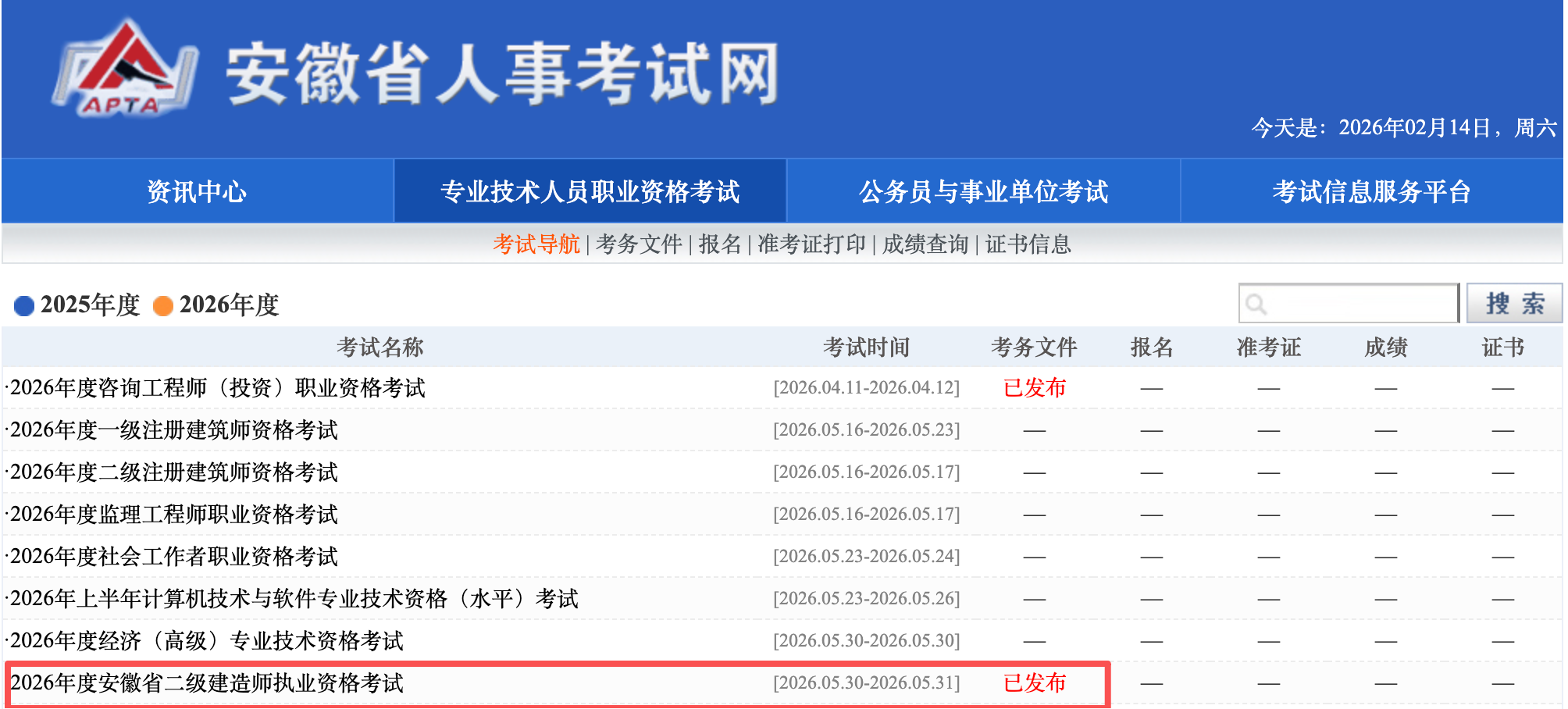 安徽發(fā)布2026年度安徽省二級(jí)建造師執(zhí)業(yè)資格考試:5月30日、31日