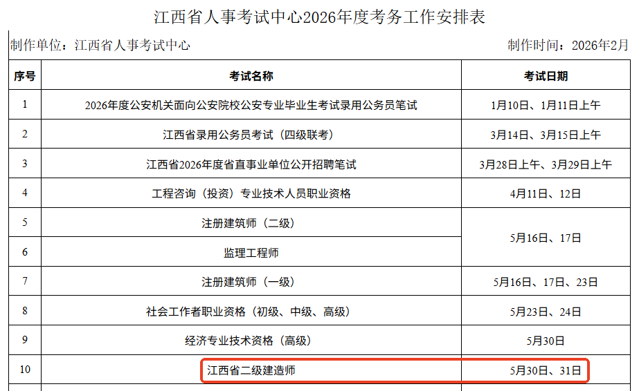 - · 2025年江西省二級建造師考試時間5月10日、11日