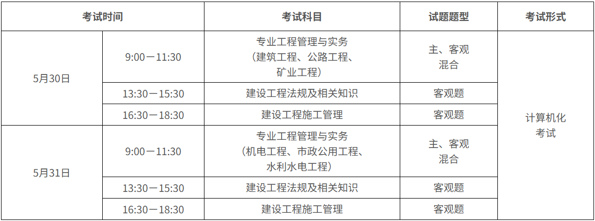 注:1.《專業(yè)工程管理與實(shí)務(wù)》科目分為建筑工程、公路工程、礦業(yè)工程、機(jī)電工程、市政公用工程、水利水電工程6個專業(yè),報(bào)考人員可根據(jù)實(shí)際工作需要選報(bào)其一。