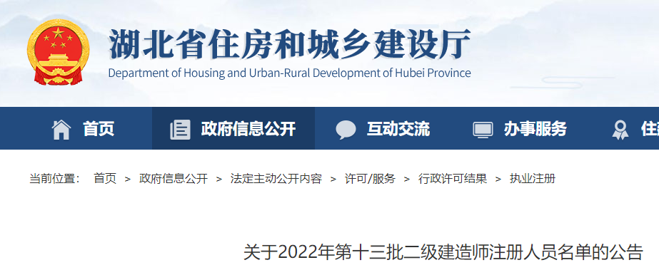 湖北關(guān)于2022年第十三批二級(jí)建造師注冊(cè)人員名單的公告