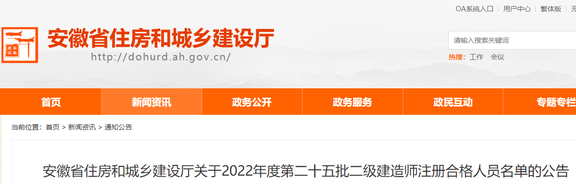 安徽2022年度第二十五批二級建造師注冊合格人員名單的公告