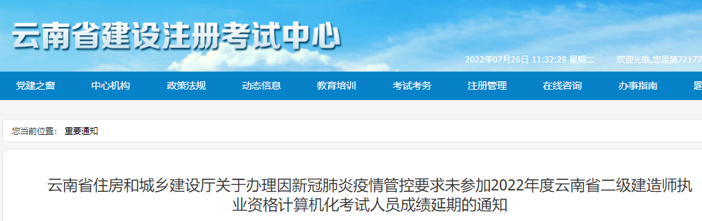 【注意】云南辦理2022年因疫情未參加二建考試人員成績(jī)延期的通知