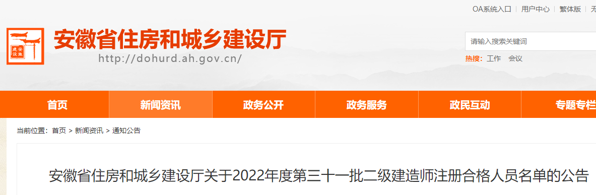 安徽關(guān)于2022年度第三十一批二級(jí)建造師注冊(cè)合格人員名單的公告