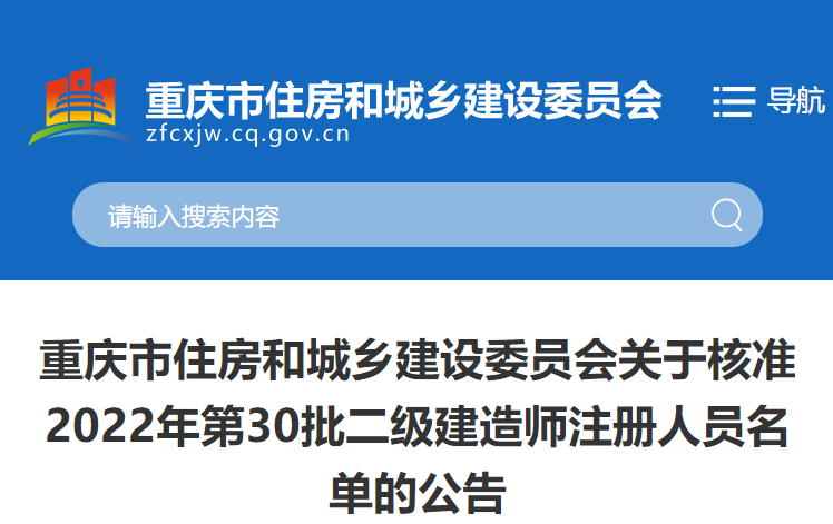 重慶關(guān)于核準(zhǔn)2022年第30批二級建造師注冊人員名單的公告