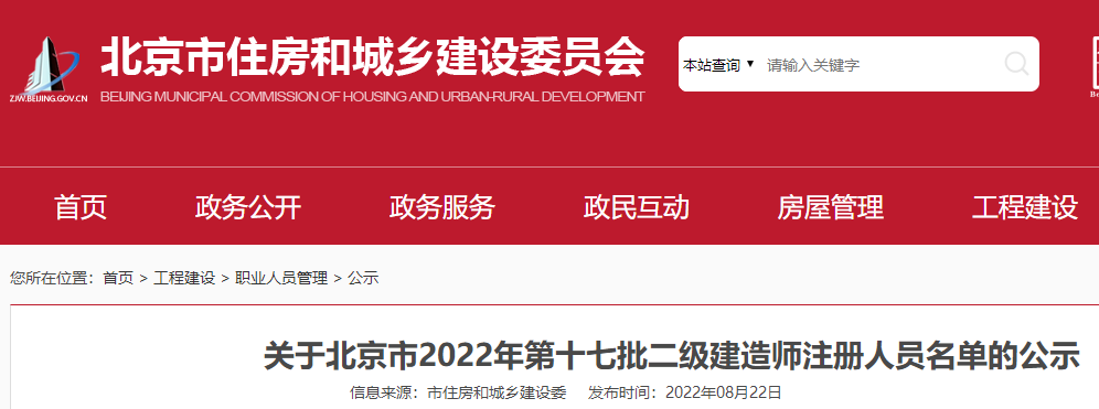 關(guān)于北京市2022年第十七批二級(jí)建造師注冊(cè)人員名單的公示