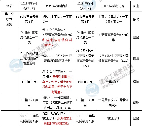 2022版教材總體比2021版教材頁碼多出6頁,增加內(nèi)容較零散細(xì)碎。涉及到道路工程、橋梁工程、管道工程、施工測量以及招投標(biāo)管理。教材變動(dòng)幅度整體在13%左右。
