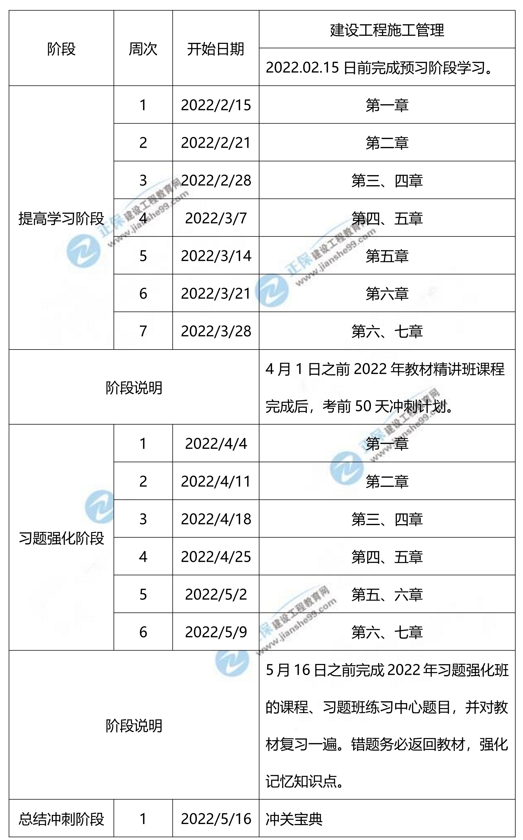 2、已報網(wǎng)校2022年二級建造師輔導高效實驗班/尊享無憂班的同學,將由班主任老師根據(jù)您的信息反饋及學習時間制定更詳盡的計劃表,如與本表不一致,請以班主任老師制定的學習計劃為準。