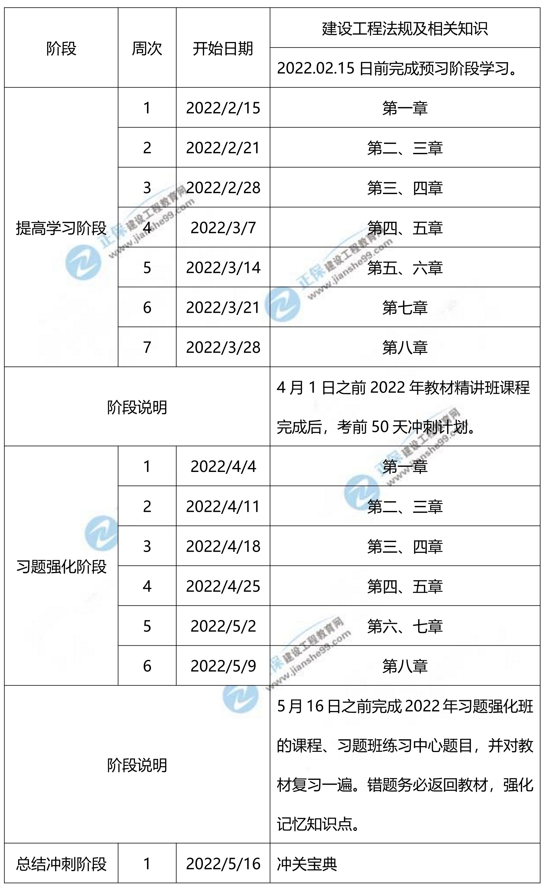 2、已報網(wǎng)校2022年二級建造師輔導高效實驗班/尊享無憂班的同學,將由班主任老師根據(jù)您的信息反饋及學習時間制定更詳盡的計劃表,如與本表不一致,請以班主任老師制定的學習計劃為準。