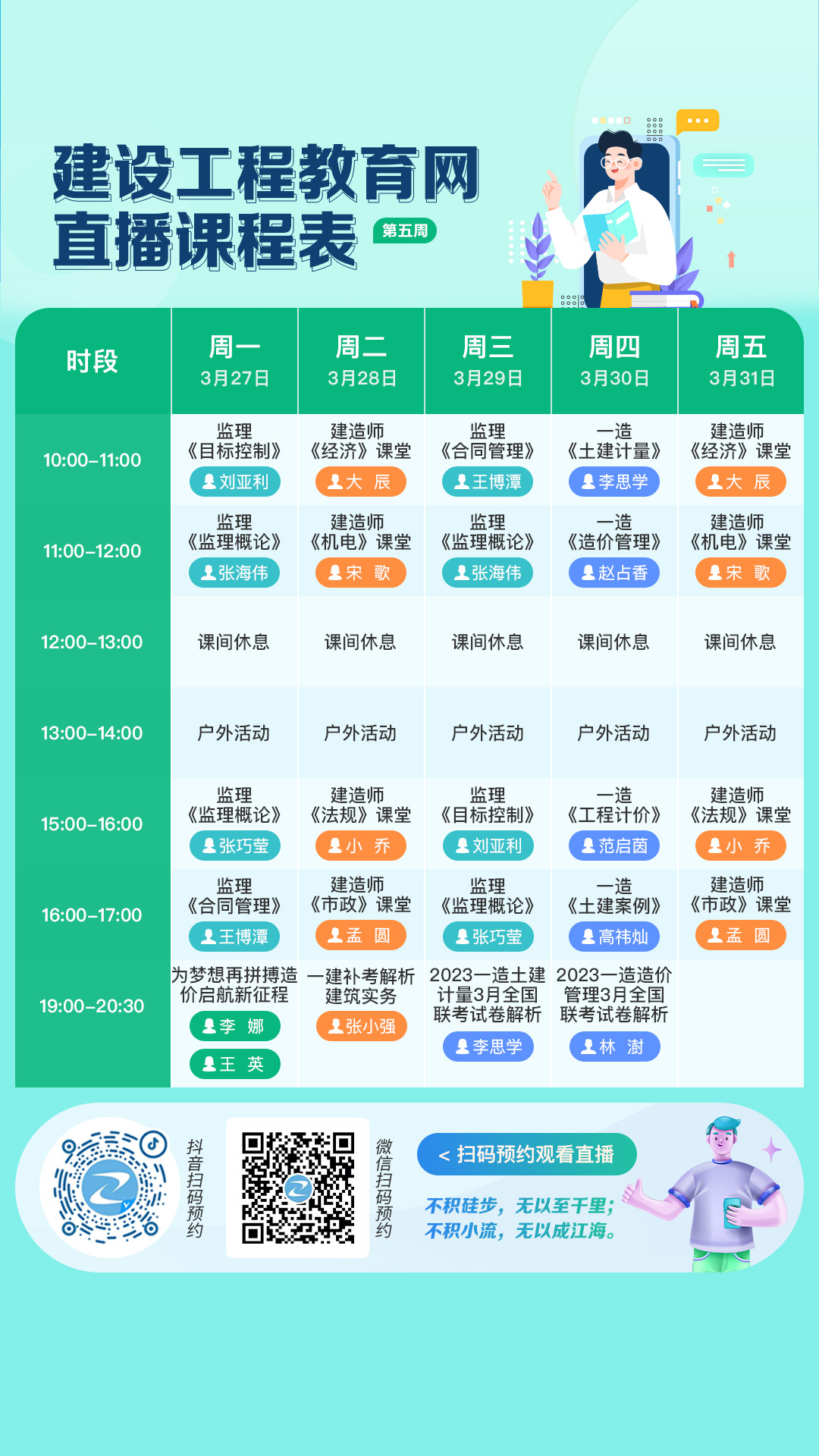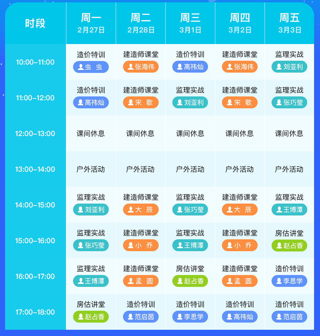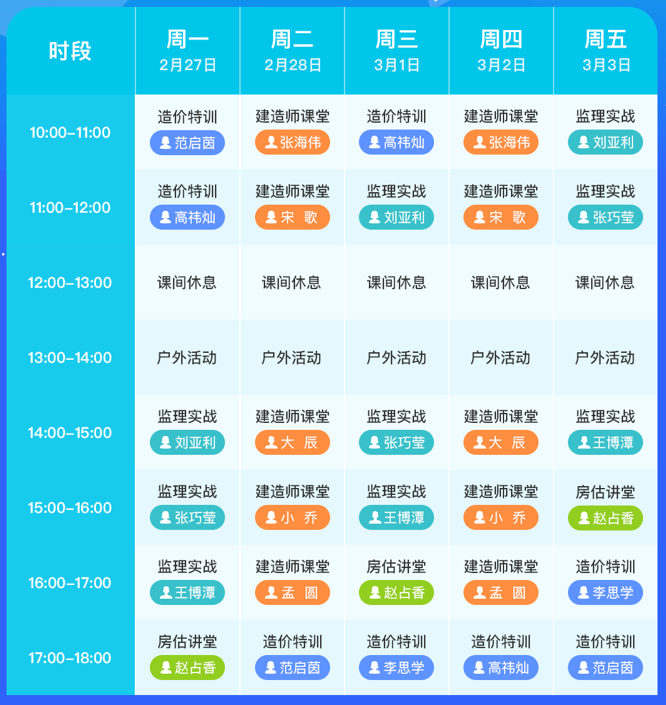直播時間:每周一至周五,各輔導直播安排見下方課表