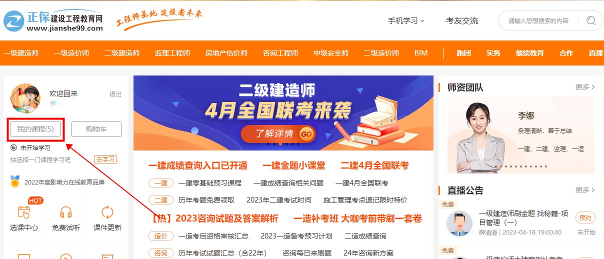 (1)電腦登錄建設(shè)工程教育網(wǎng)(http://www.mm34228.com),點擊左側(cè)“我的課程”