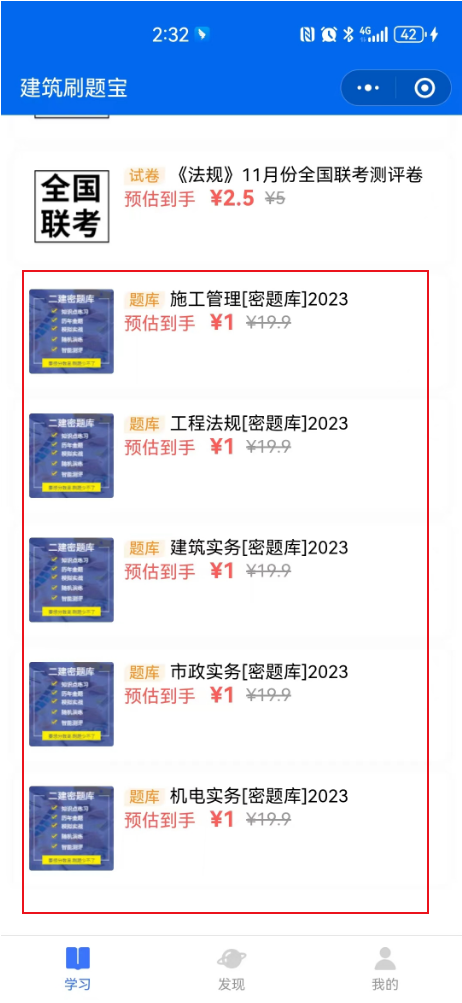 二級(jí)建造師密題庫(kù)原價(jià)19.9元,限時(shí)優(yōu)惠僅需1元,有效期至3月1日