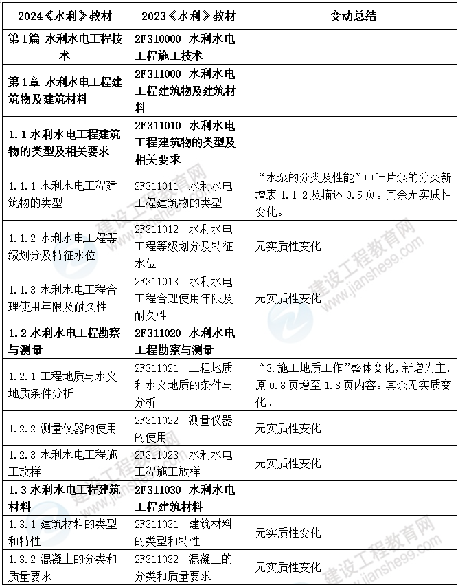 2024年二級(jí)建造師水利實(shí)務(wù)教材變動(dòng)情況表預(yù)覽