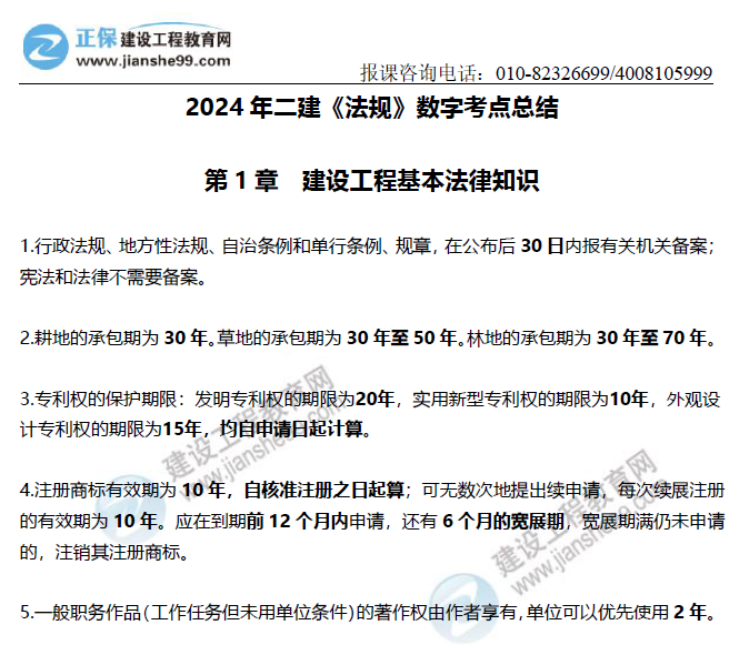 《2024年二建《法規(guī)》數(shù)字考點(diǎn)總結(jié)》