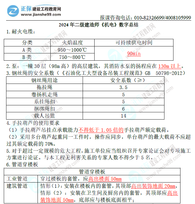 《2024年二建《機(jī)電》數(shù)字考點(diǎn)匯總》