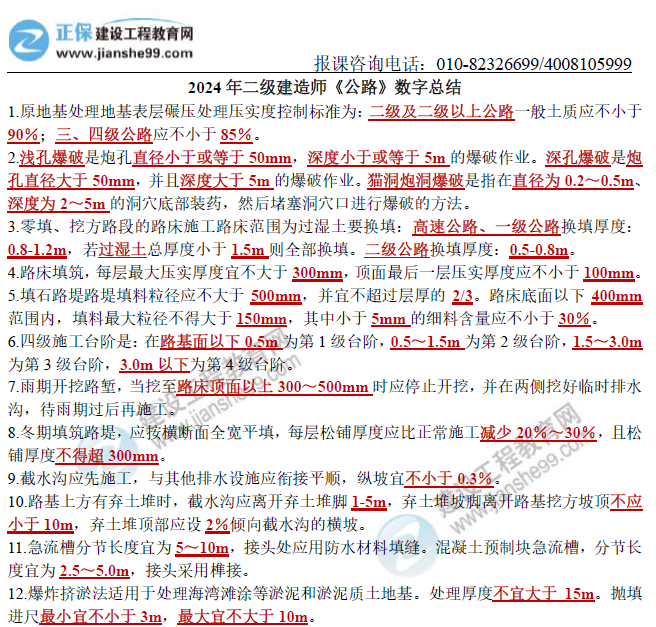 《2024年二建《公路》數(shù)字考點(diǎn)匯總》