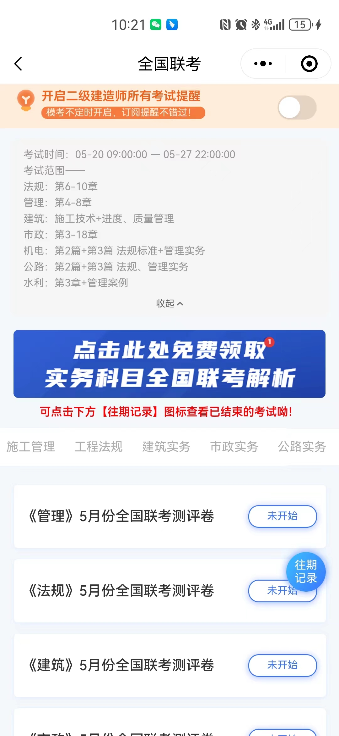 4、聯(lián)考試卷將于考試結(jié)束后上線出售,如果您想多次做題可在“建筑刷題寶”小程序“模擬實戰(zhàn)”中購買(僅限安卓用戶)。