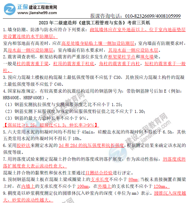 2024年二級(jí)建造師考生朋友們注意啦,二建考試正式進(jìn)入倒計(jì)時(shí),建設(shè)工程教育網(wǎng)教研團(tuán)隊(duì)的老師們?cè)谧詈蟮臎_刺階段為大家準(zhǔn)備了了考試主攻神器【考前三頁(yè)紙】,大家進(jìn)群免費(fèi)領(lǐng)?。。。?/strong>