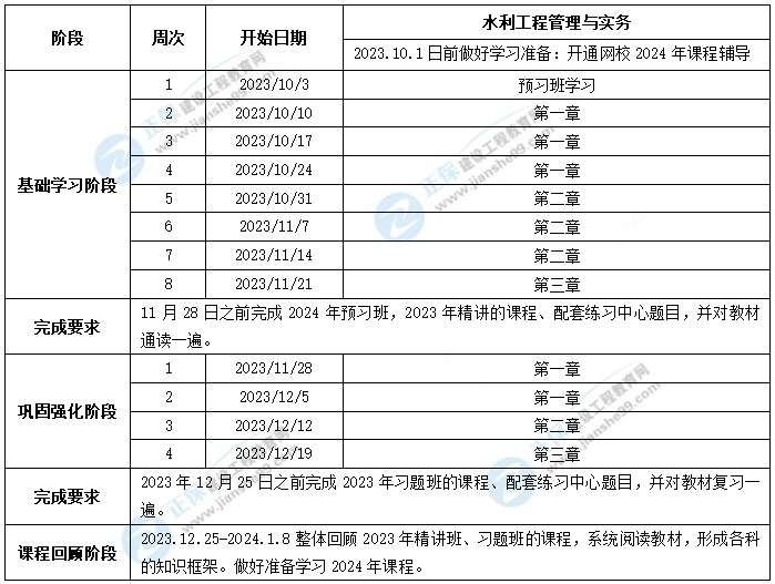 1、整體進(jìn)度說明:本計劃表從2024年9月2日開始執(zhí)行,計劃于2025年1月5日結(jié)束,共計18周;其中:基礎(chǔ)學(xué)習(xí)階段安排8周,鞏固強(qiáng)化階段安排8周,課程整體回顧階段安排2周。學(xué)員可根據(jù)本表的提示,結(jié)合自己的工作,學(xué)習(xí)情況進(jìn)行細(xì)化,并按網(wǎng)校要求完成聽課、做題的學(xué)習(xí)任務(wù),基本可滿足考試需要。