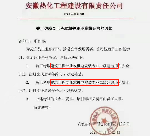近日,小編在網(wǎng)絡(luò)上瀏覽到這樣一個(gè)通知,其中提到“員工考取建筑工程專業(yè)或機(jī)電安裝專業(yè)二級(jí)建造師,注冊(cè)完成后每年給與5萬(wàn)元獎(jiǎng)勵(lì)”。二級(jí)建造師證書(shū)=5萬(wàn)元獎(jiǎng)勵(lì),香不香?!