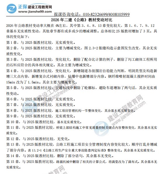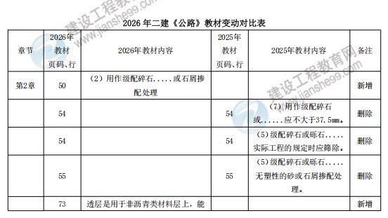 2026年二級(jí)建造師《公路實(shí)務(wù)》新教材變動(dòng)梳理出爐!建設(shè)工程教育網(wǎng)教務(wù)團(tuán)隊(duì)拿到教材后第一時(shí)間為大家梳理變動(dòng)詳細(xì)內(nèi)容,經(jīng)核對(duì),2026年公路實(shí)務(wù)科目整體變動(dòng)約4%,教材變動(dòng)內(nèi)容如下,更多變動(dòng)解讀請(qǐng)關(guān)注8月27日19:00聶旺老師直播間!