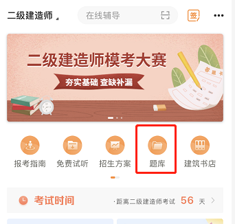 1、登錄電腦端建設(shè)工程教育網(wǎng),點(diǎn)擊“建筑題庫”,進(jìn)入下面的頁面;