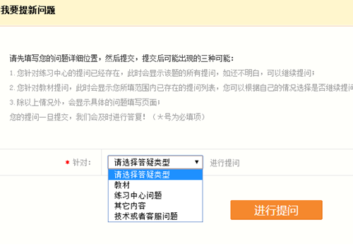 選擇答疑類型,進行提問