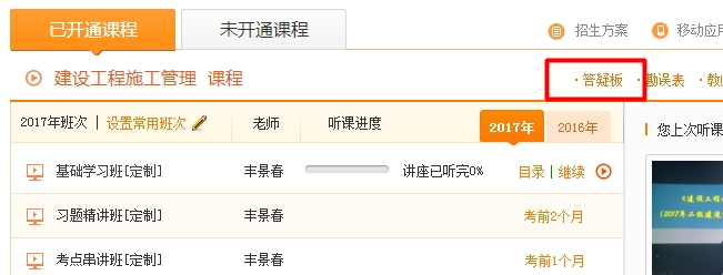 進入我的網(wǎng)校我的家,選擇答疑板