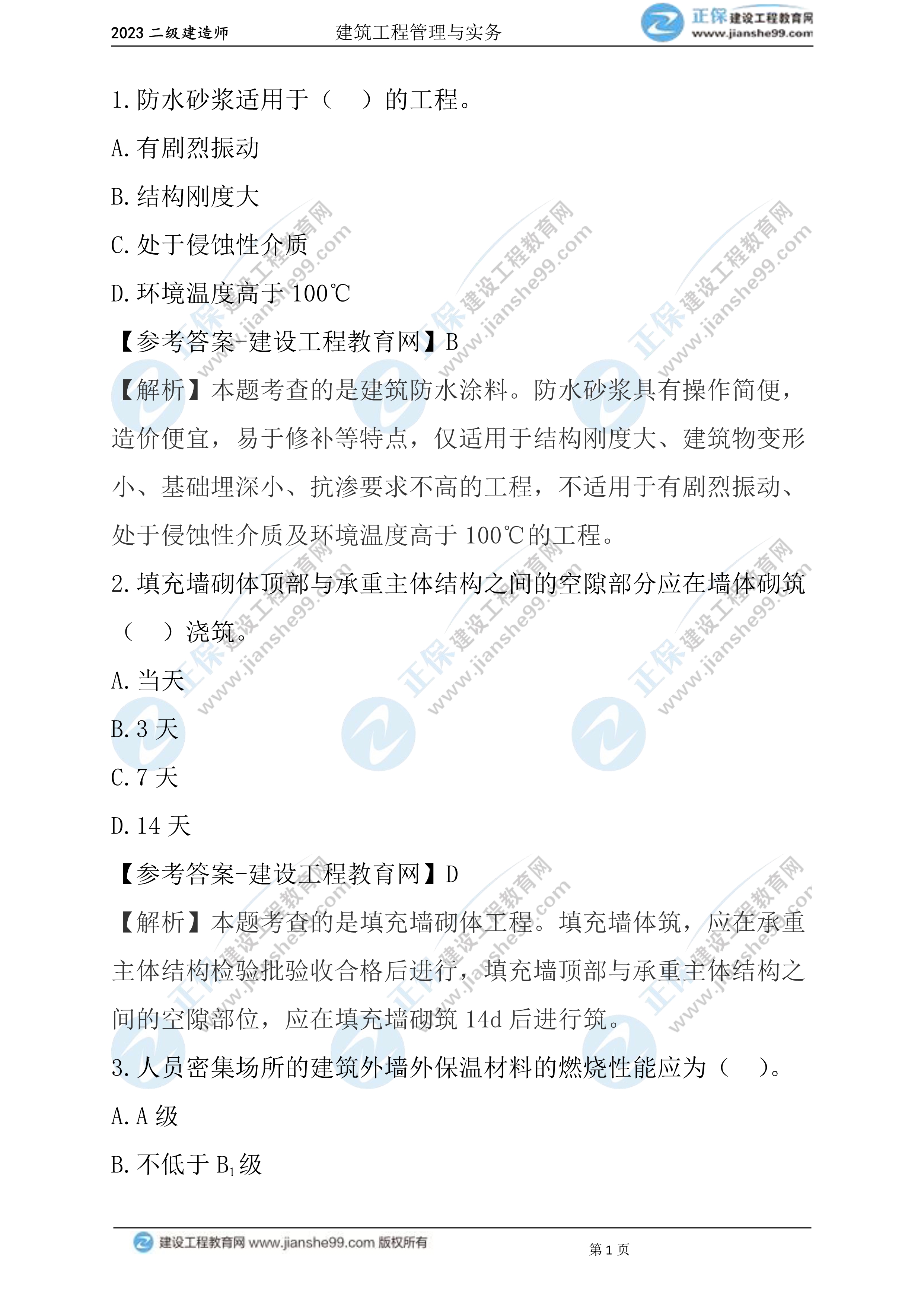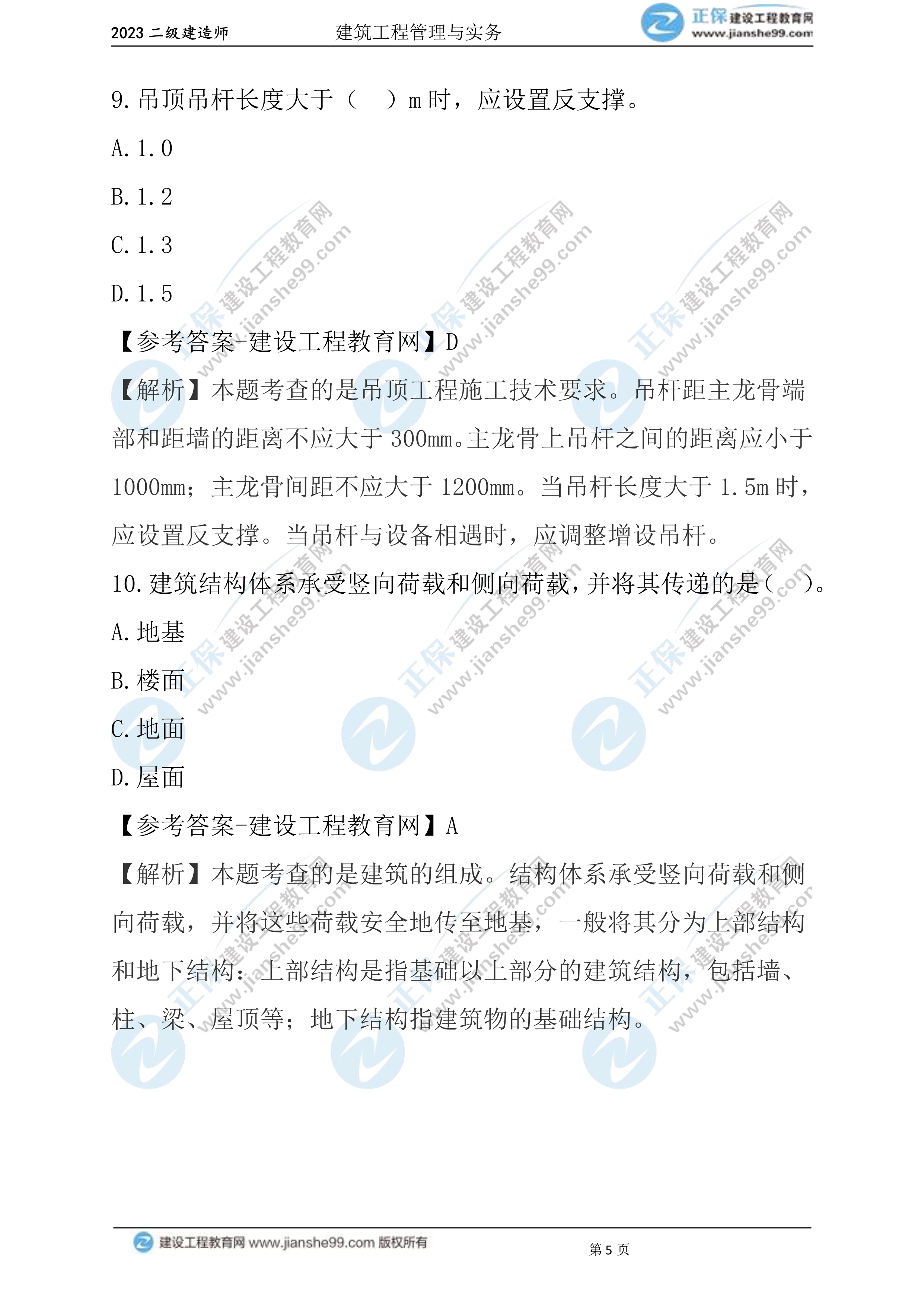 2023年二級建造師建筑實務(wù)真題及答案1-10(兩天兩批次)