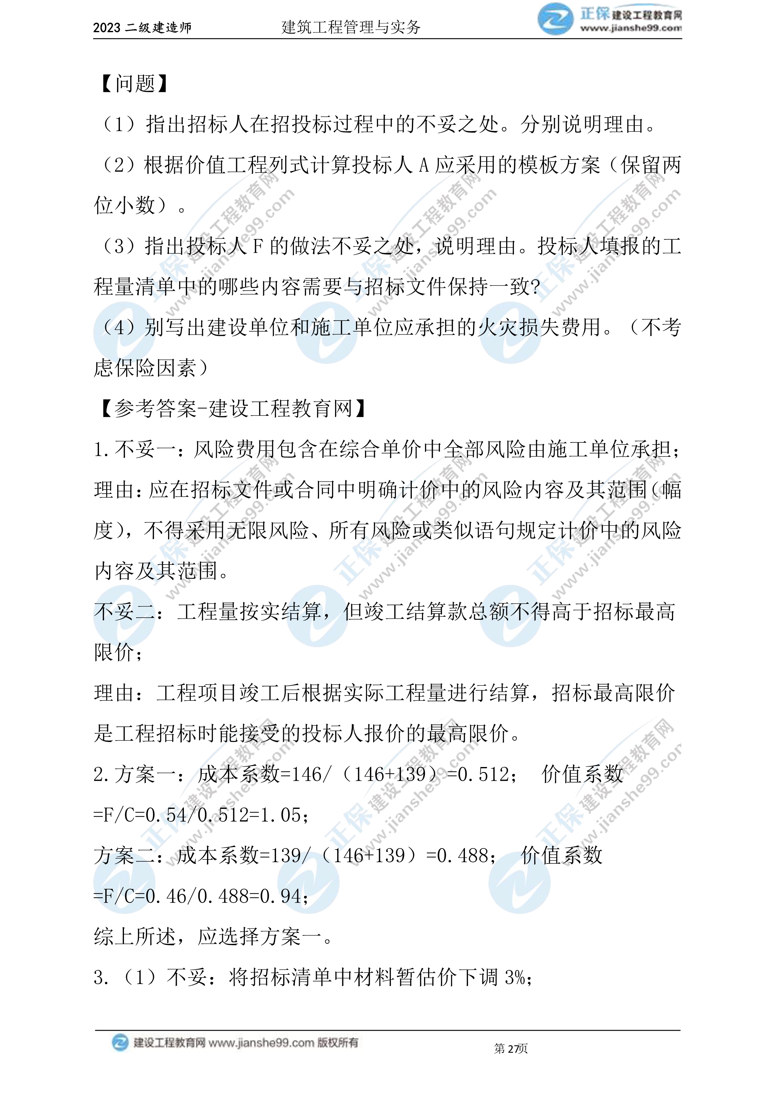 2023年二級(jí)建造師建筑實(shí)務(wù)真題及答案案例四(兩天兩批次)
