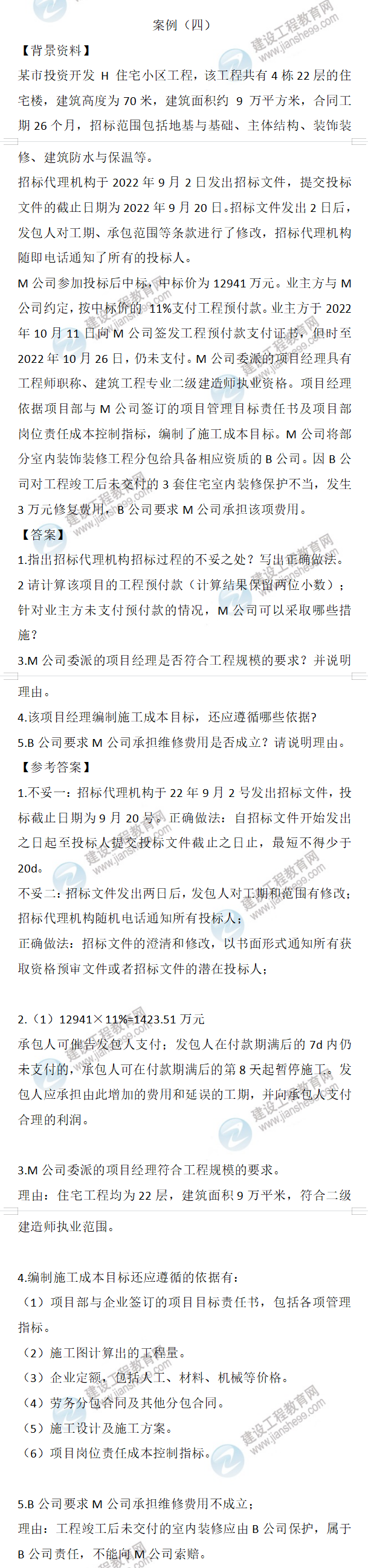 2023年二級(jí)建造師建筑實(shí)務(wù)真題及答案案例四