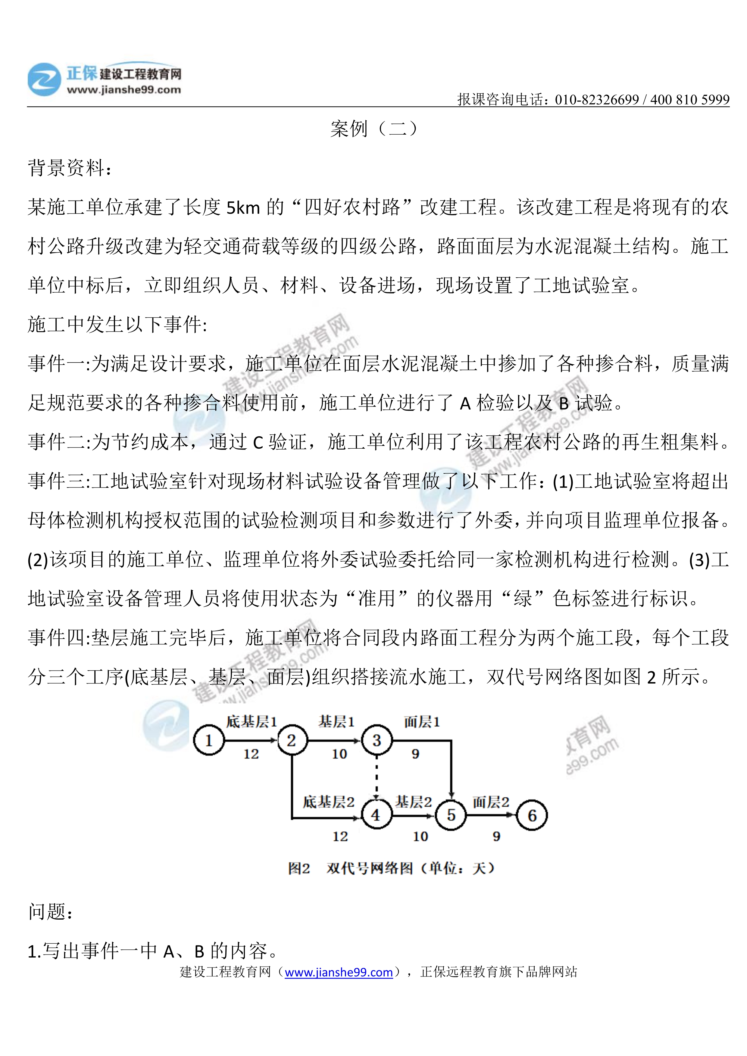 2023年二級(jí)建造師公路實(shí)務(wù)真題及答案案例二(兩天兩批次)