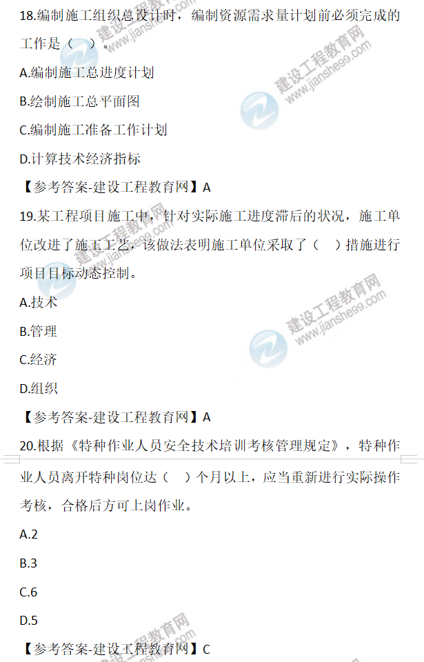 2022年二級(jí)建造師施工管理試題及答案11-20(11日上午)