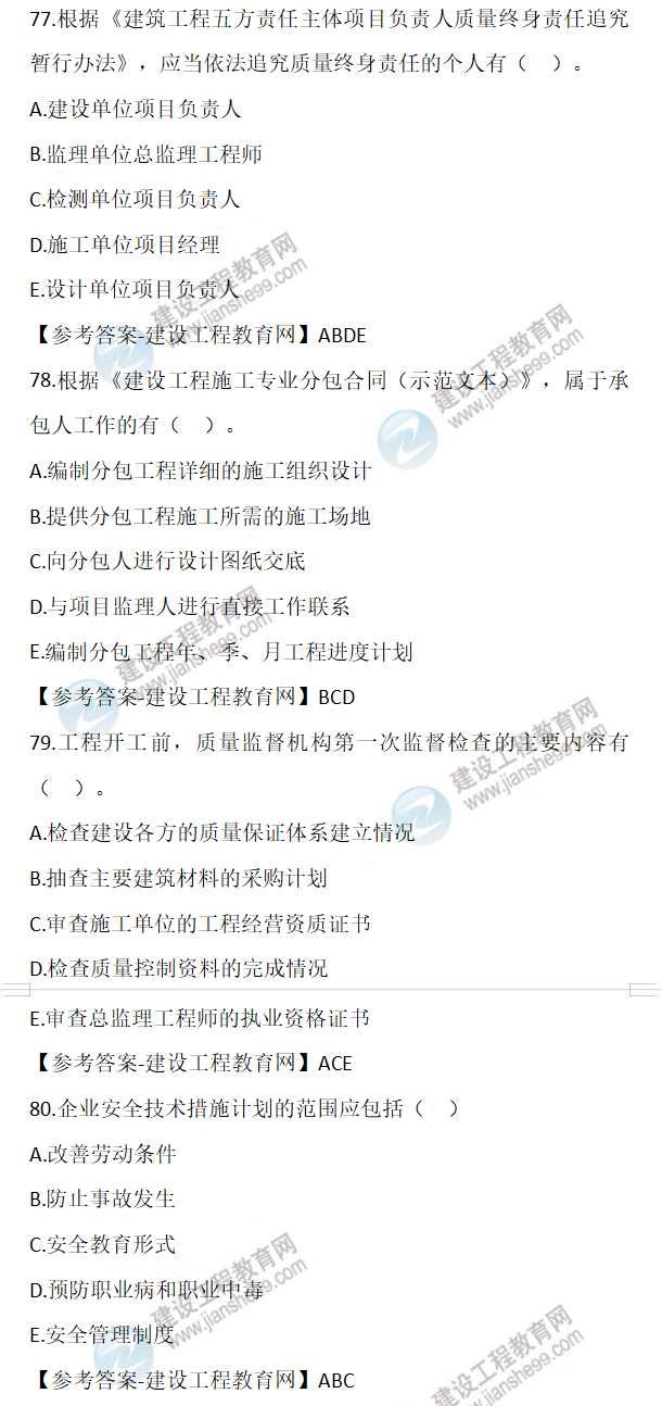 2022年二級(jí)建造師施工管理試題及答案71-80(11日上午)