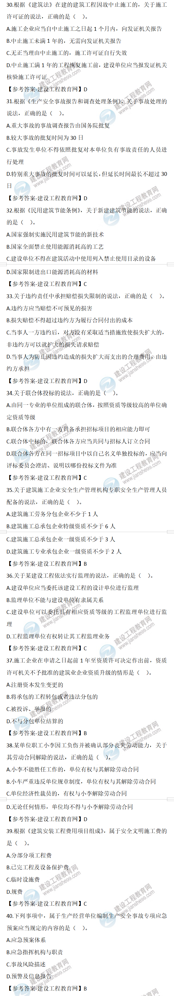 2022年二級(jí)建造師工程法規(guī)試題及答案31-40(11日2天3科)