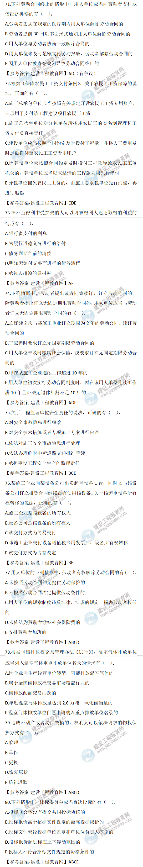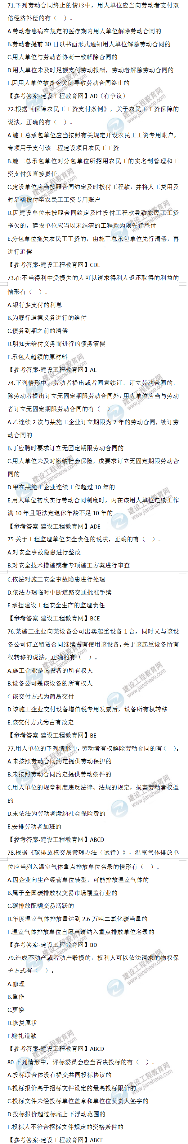 2022年二級建造師工程法規(guī)試題及答案71-80(11日2天3科)