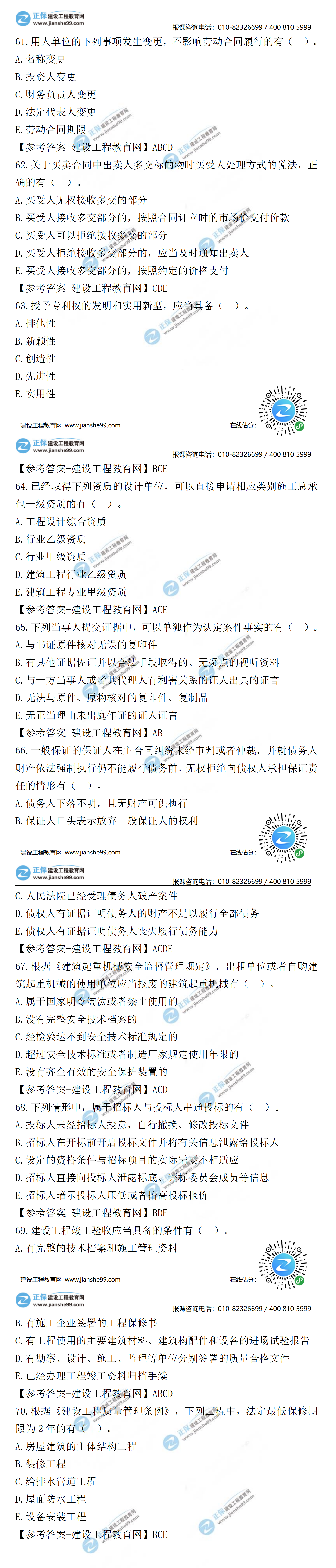 2021年二級(jí)建造師工程法規(guī)試題及答案第61-70題