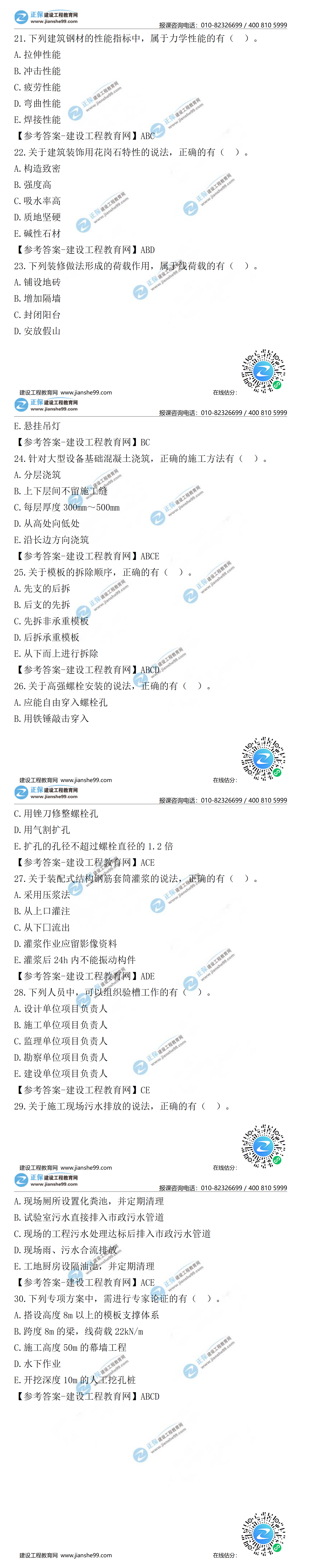 2021年二級建造師建筑工程實務(wù)試題及答案第21-30題(30日)