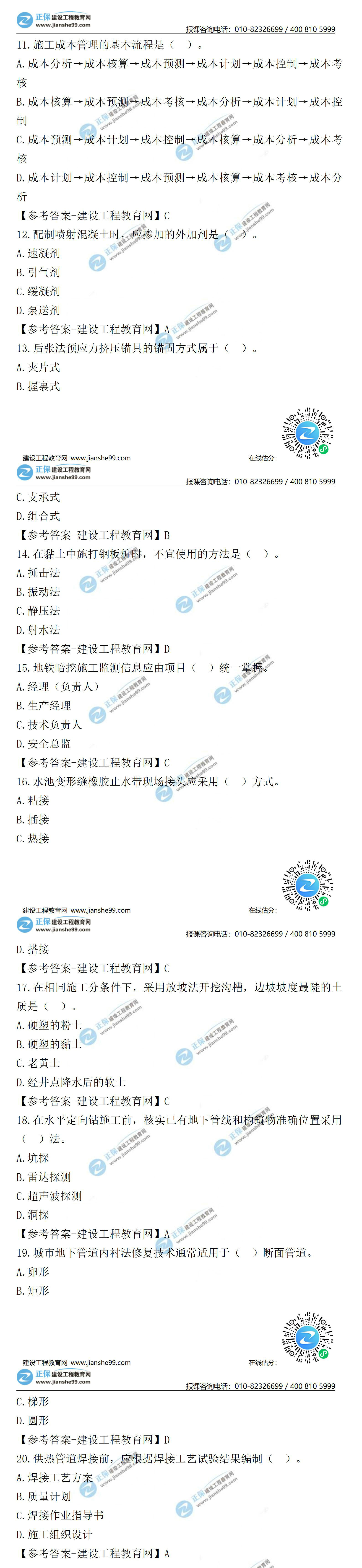 2021年二級(jí)建造師市政工程實(shí)務(wù)試題及答案第11-20題(30日)