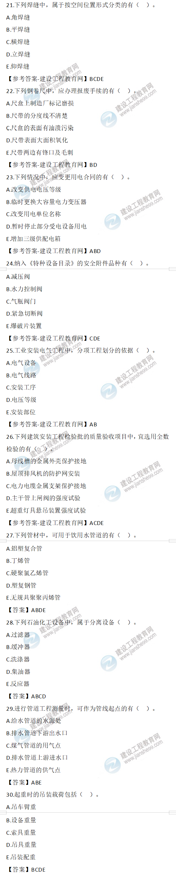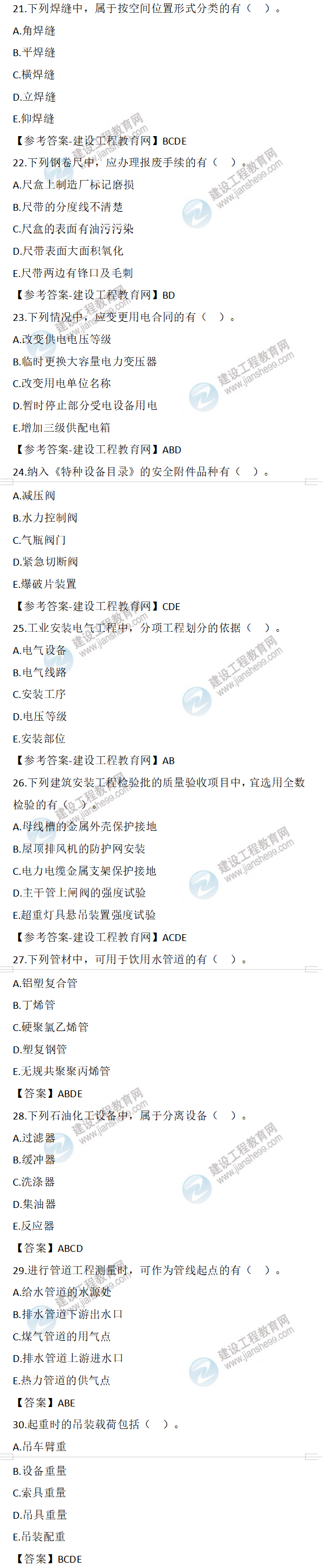 2022年二級建造師機電實務試題及答案第21-30題(12日2天3科)